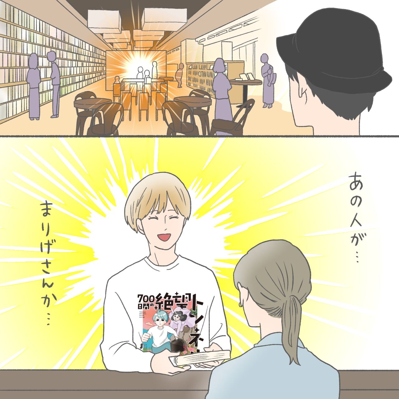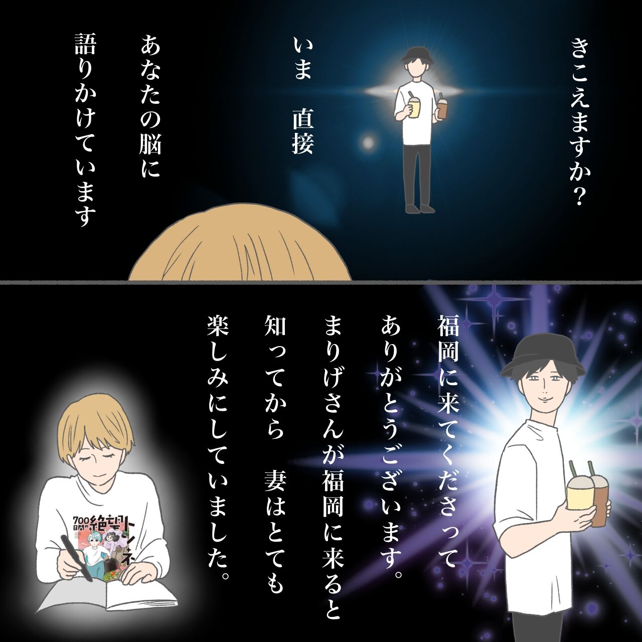 まりげさんが描かれた福岡にサイン会についての漫画に